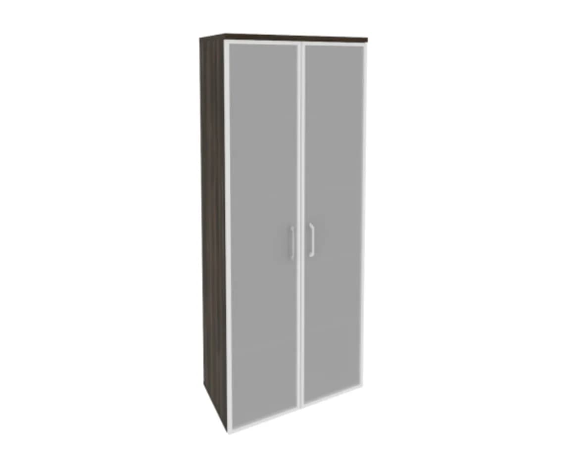 Шкаф высокий широкий (2 высоких фасада стекло в раме) дуб мали