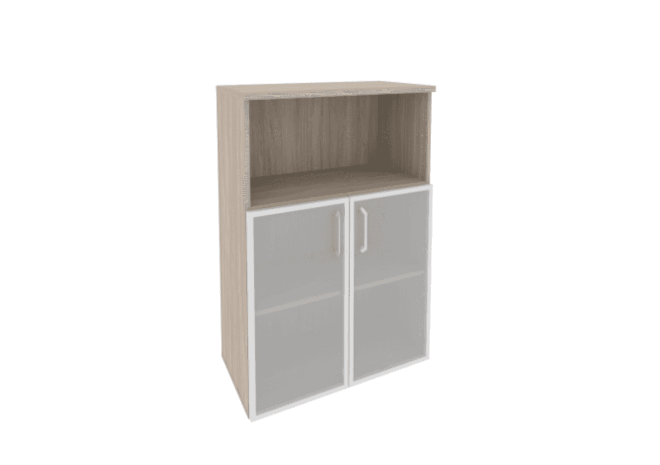 Шкаф средний широкий (2 низких фасада стекло в раме), дуб аттик