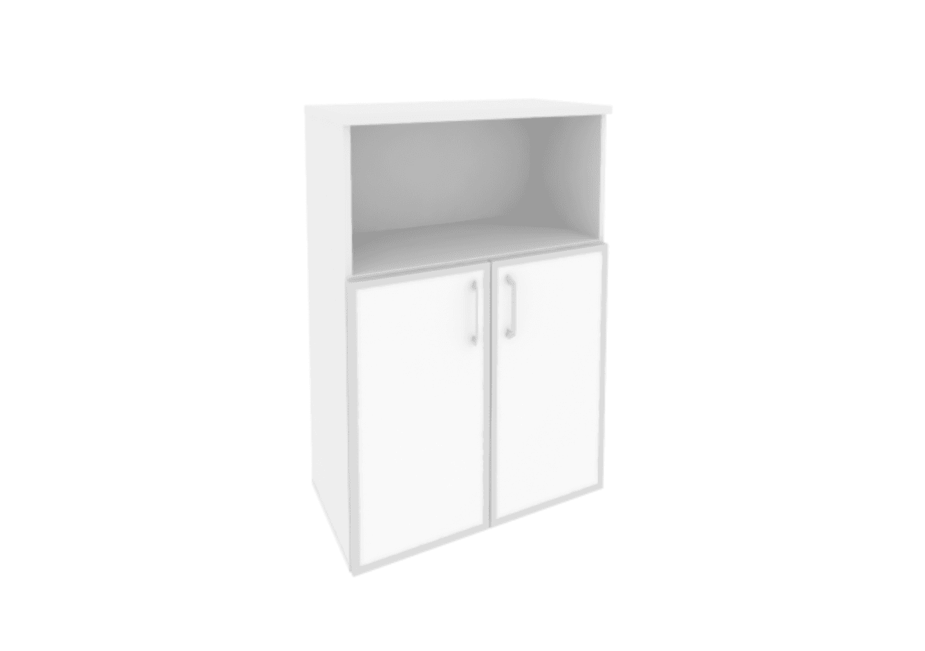 Шкаф средний широкий (2 низких фасада стекло лакобель в раме), белый бриллиант