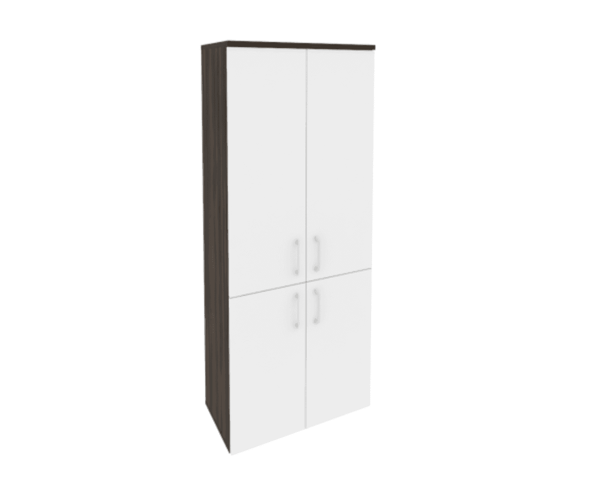 Шкаф высокий широкий (2 низких фасада ЛДСП + 2 средних фасада ЛДСП) фасад белый бриллиант, дуб мали