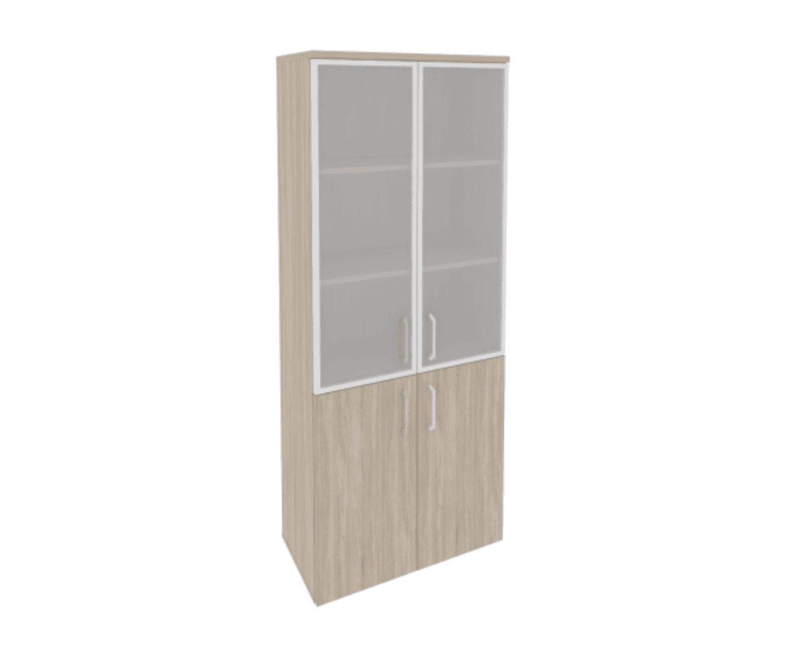 Шкаф высокий широкий (2 низких фасада ЛДСП + 2 средних фасада стекло в раме), дуб аттик