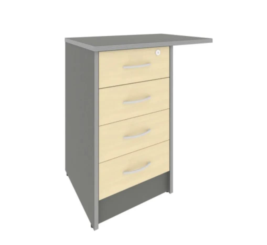 Тумба приставная c фолдингом (с замком, 4 ящика, универсальная левая/правая) клён металлик