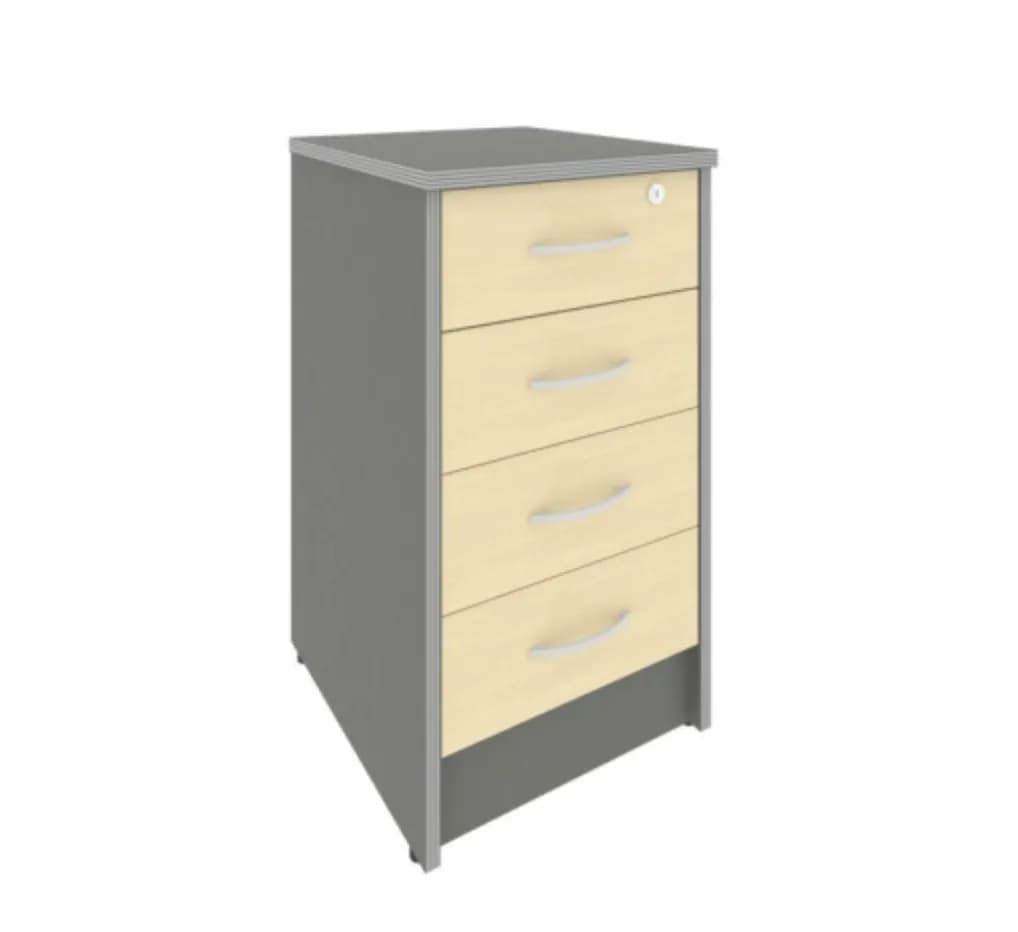 Тумба приставная с фолдингом (4 ящика, с замком) 450 клён металлик