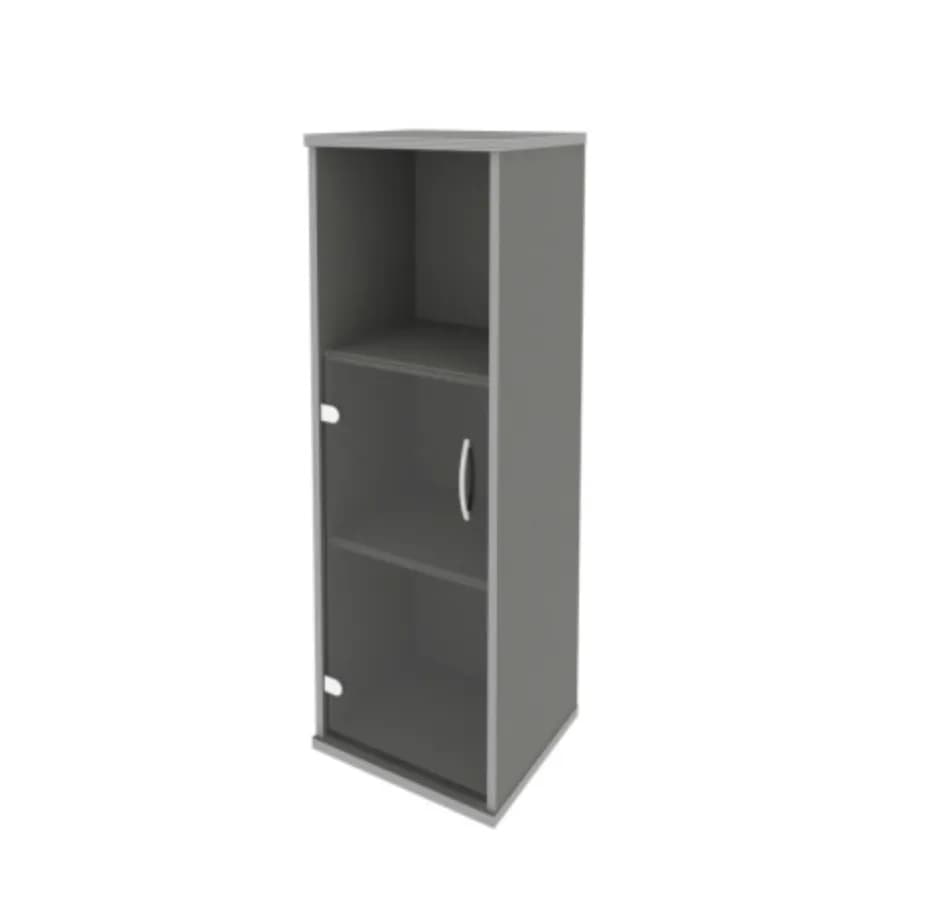 Шкаф средний узкий левый/правый (1 низкая дверь стекло) клён металлик