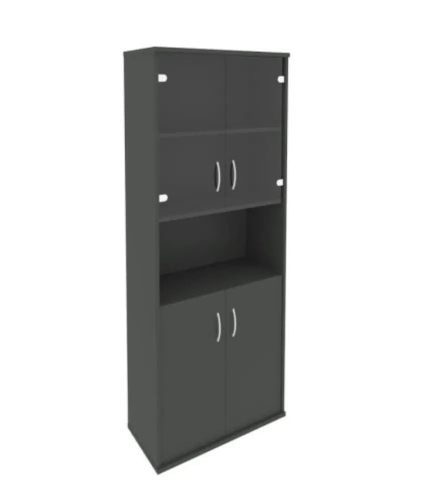 Шкаф высокий широкий (2 низкие двери ЛДСП, 2 низкие двери стекло) антрацит