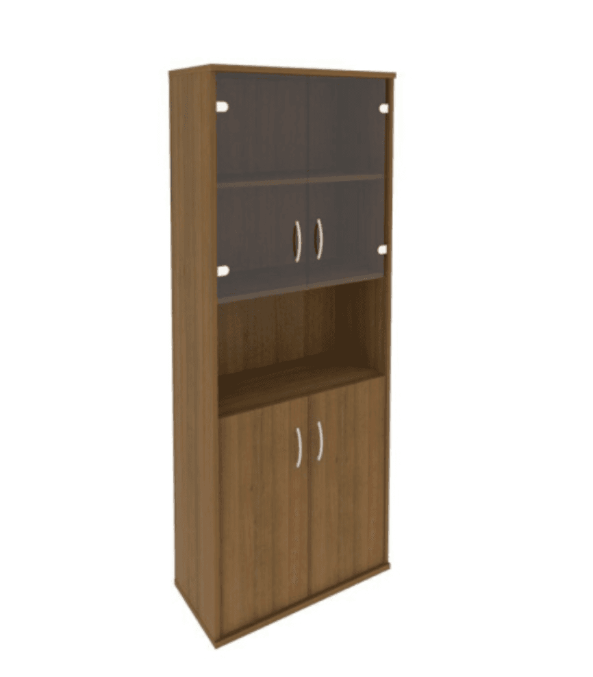 Шкаф высокий широкий (2 низкие двери ЛДСП, 2 низкие двери стекло), орех гварнери