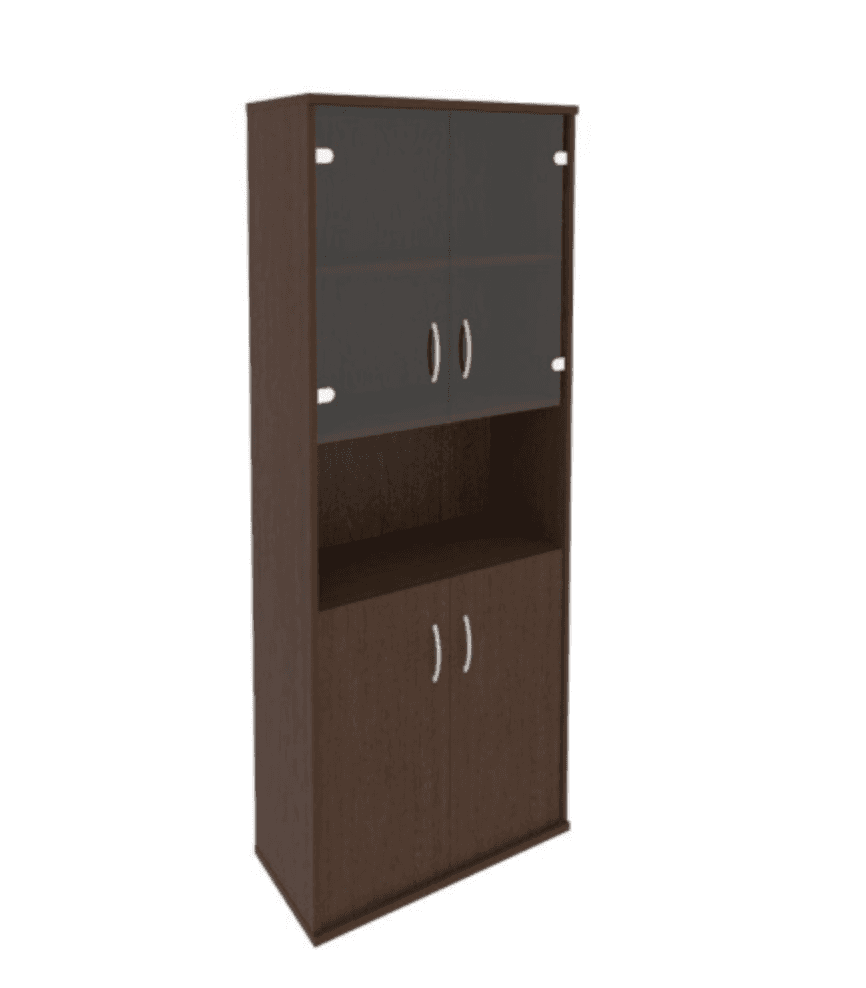 Шкаф высокий широкий (2 низкие двери ЛДСП, 2 низкие двери стекло), венге цаво