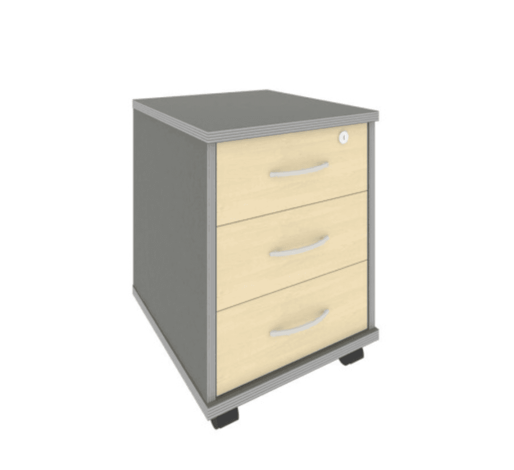 Тумба подкатная (3 ящика фолдинг, с замком), клён металлик