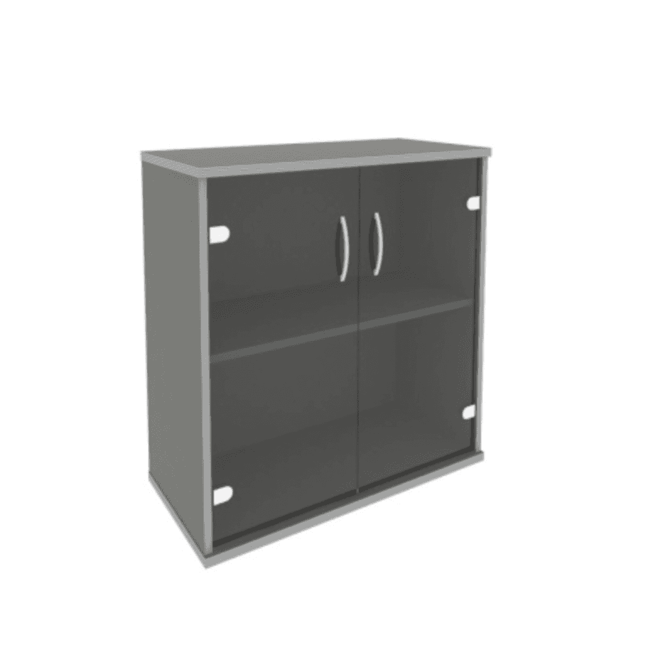 Шкаф низкий широкий (2 низкие двери стекло), клён металлик