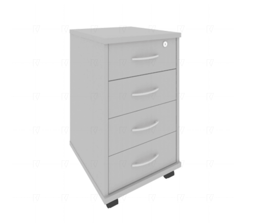 Тумба подкатная (4 ящика фолдинг, с замком), серый
