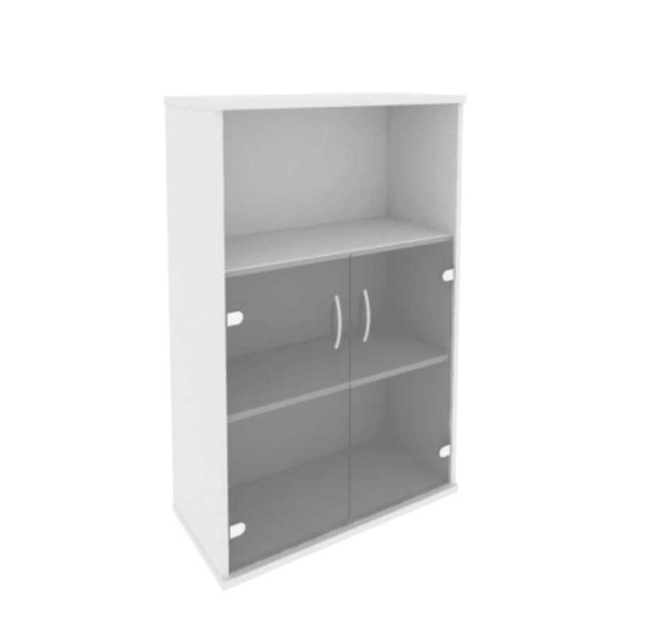 Шкаф средний широкий (2 низкие двери стекло), белый