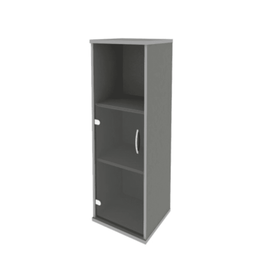Шкаф средний узкий левый/правый (1 низкая дверь стекло), клён металлик