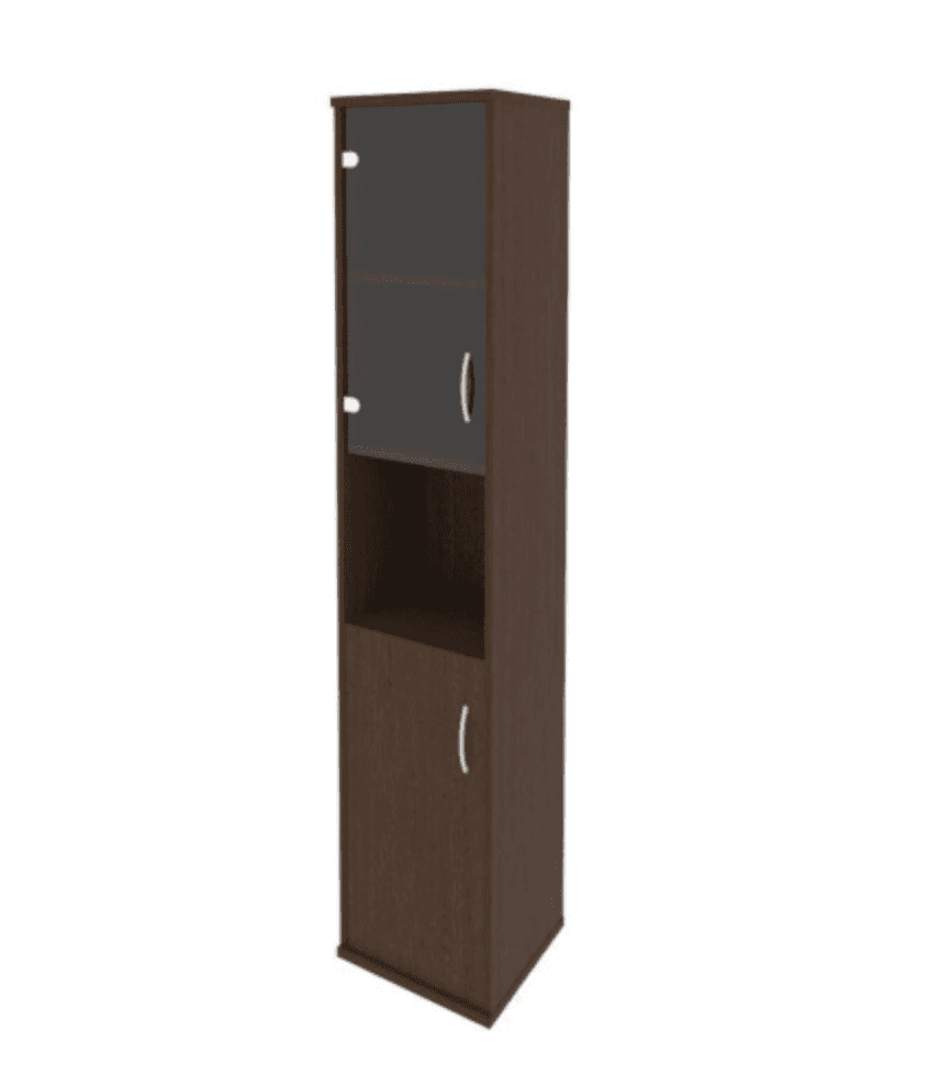 Шкаф высокий узкий левый/правый (1 низкая дверь ЛДСП, 1 низкая дверь стекло), венге цаво