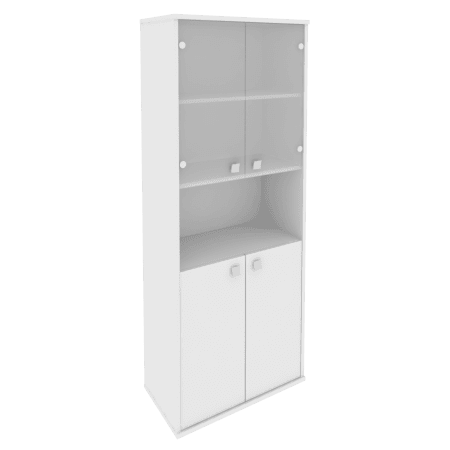 Шкаф высокий широкий (2 низкие двери ЛДСП, 2 низкие двери стекло), белый