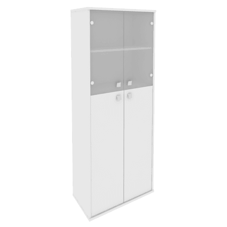 Шкаф высокий широкий (2 средние двери ЛДСП, 2 низкие двери стекло), белый