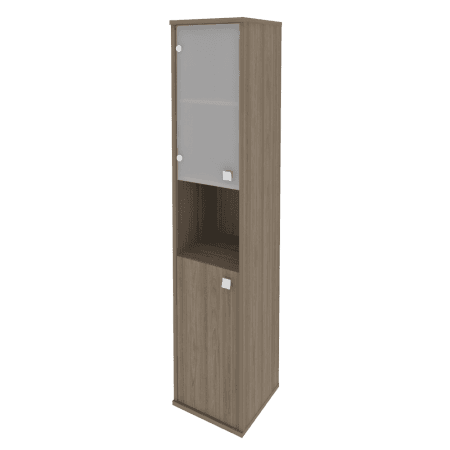 Шкаф высокий узкий левый/правый (1 низкая дверь ЛДСП, 1 низкая дверь стекло), вяз благородный
