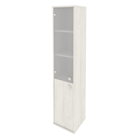 Шкаф высокий узкий левый/правый (1 низкая дверь ЛДСП, 1 средняя дверь стекло), дуб наварра