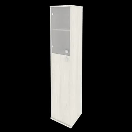 Шкаф высокий узкий левый/правый (1 средняя дверь ЛДСП, 1 низкая дверь стекло) дуб наварра