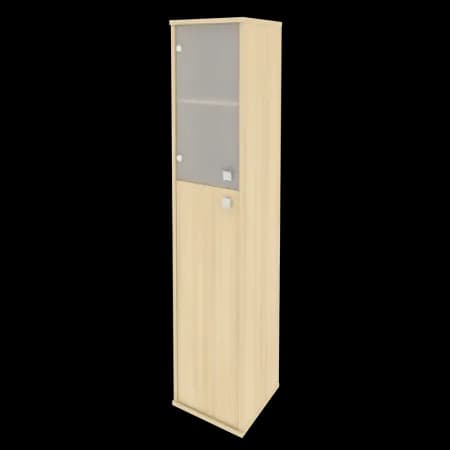 Шкаф высокий узкий левый/правый (1 средняя дверь ЛДСП, 1 низкая дверь стекло) акация лорка