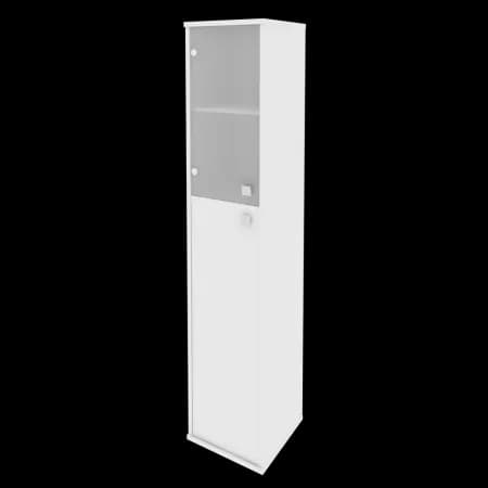 Шкаф высокий узкий левый/правый (1 средняя дверь ЛДСП, 1 низкая дверь стекло) белый