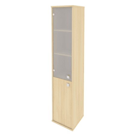 Шкаф высокий узкий левый/правый (1 низкая дверь ЛДСП, 1 средняя дверь стекло), акация лорка