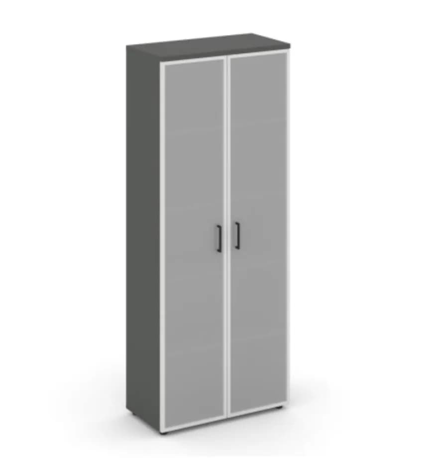Шкаф высокий широкий (2 высоких фасада стекло сатин в раме) антрацит