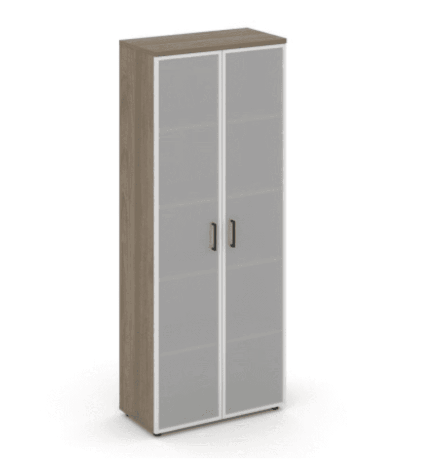 Шкаф высокий широкий (2 высоких фасада стекло сатин в раме), вяз благородный