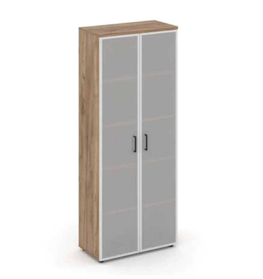Шкаф высокий широкий (2 высоких фасада стекло сатин в раме) дуб табак