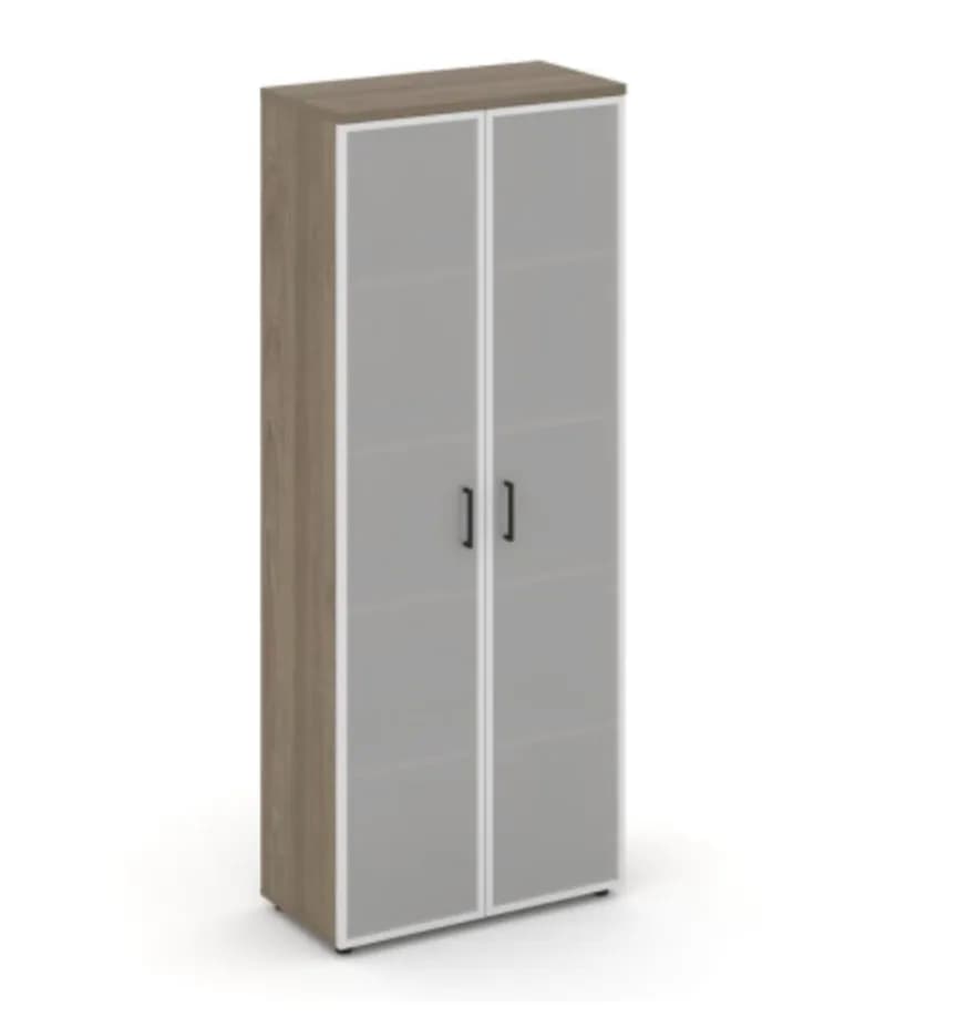 Шкаф высокий широкий (2 высоких фасада стекло сатин в раме) вяз благородный