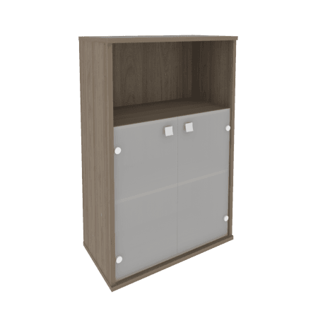 Шкаф средний широкий (2 низкие двери стекло), вяз благородный