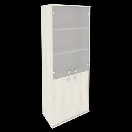 Шкаф высокий широкий (2 низкие двери ЛДСП, 2 средние двери стекло) дуб наварра