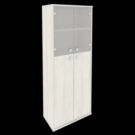 Шкаф высокий широкий (2 средние двери ЛДСП, 2 низкие двери стекло) дуб наварра