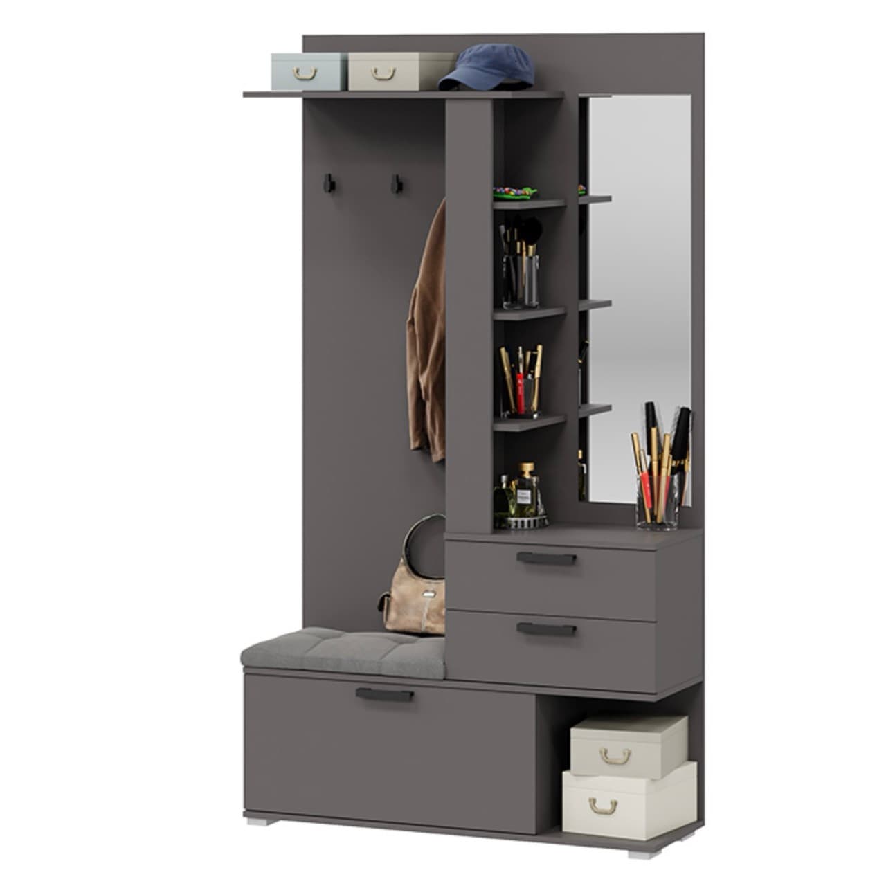 Вешалка комбинированная с крючками и зеркалом, графит