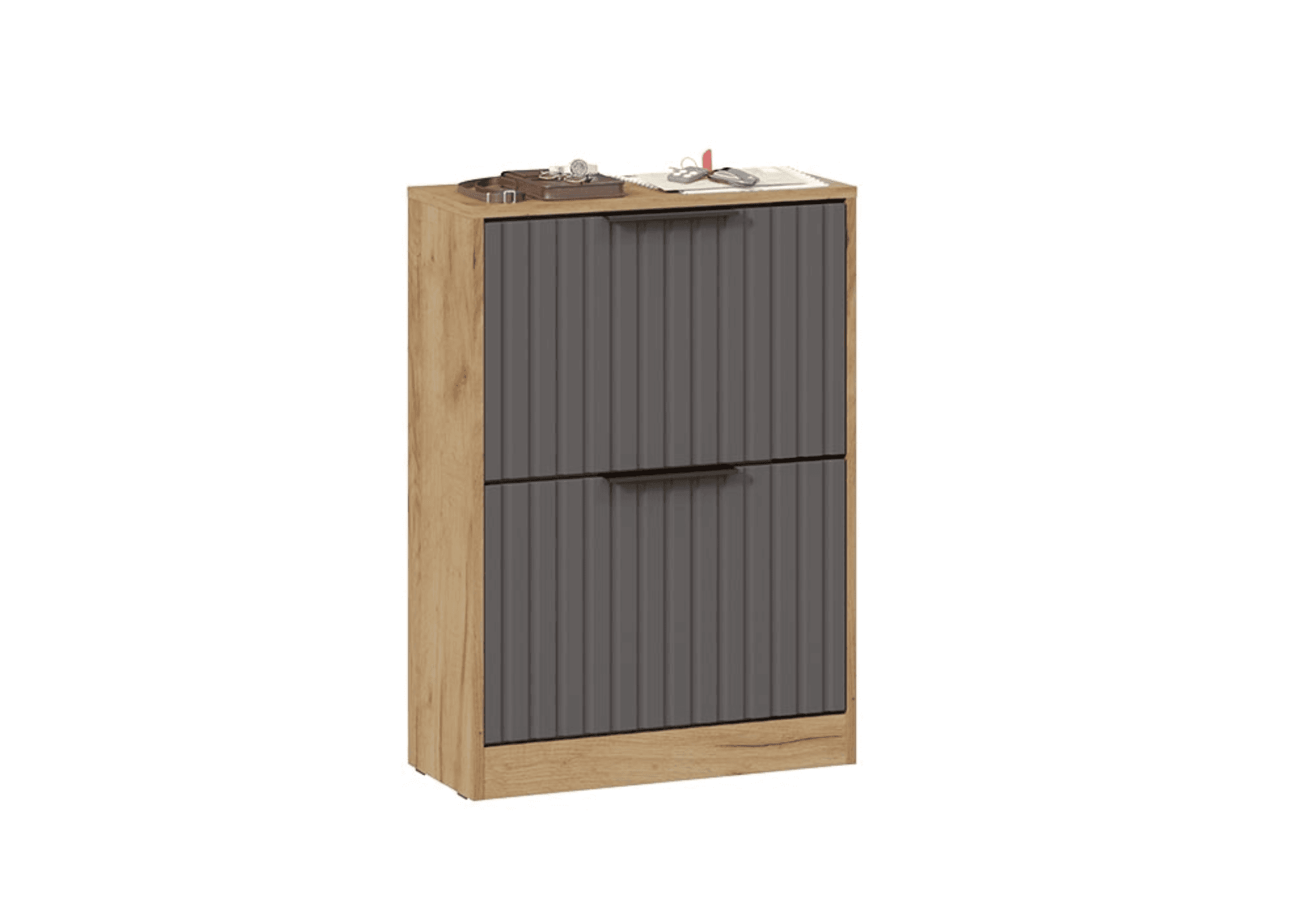 Тумба для обуви высокая - 2 ящика, дуб крафт золотой/графит матовый