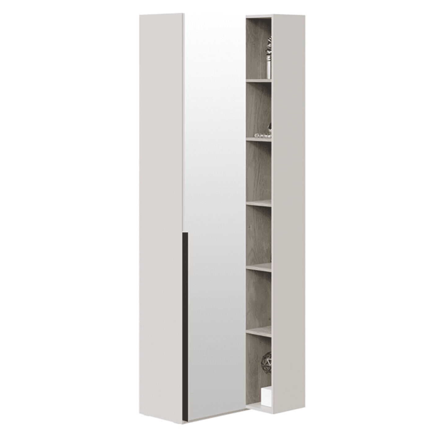 Шкаф с переходным стеллажом - 1 зеркальная дверь (глубина 36), кашемир/баттл рок