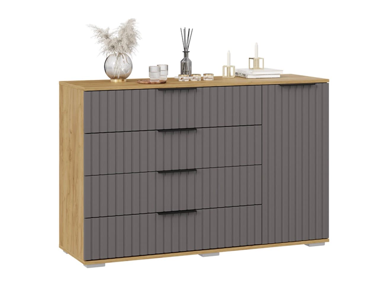 Комод комбинированный, дуб крафт золотой/графит матовый
