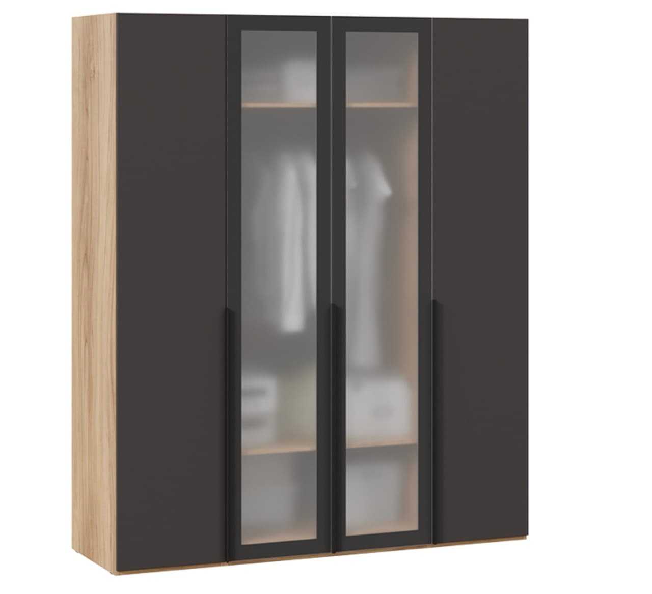 Шкаф для одежды - 2 двери закрытые/2 двери стекло сатин (глубина 58), яблоня беллуно/графит матовый