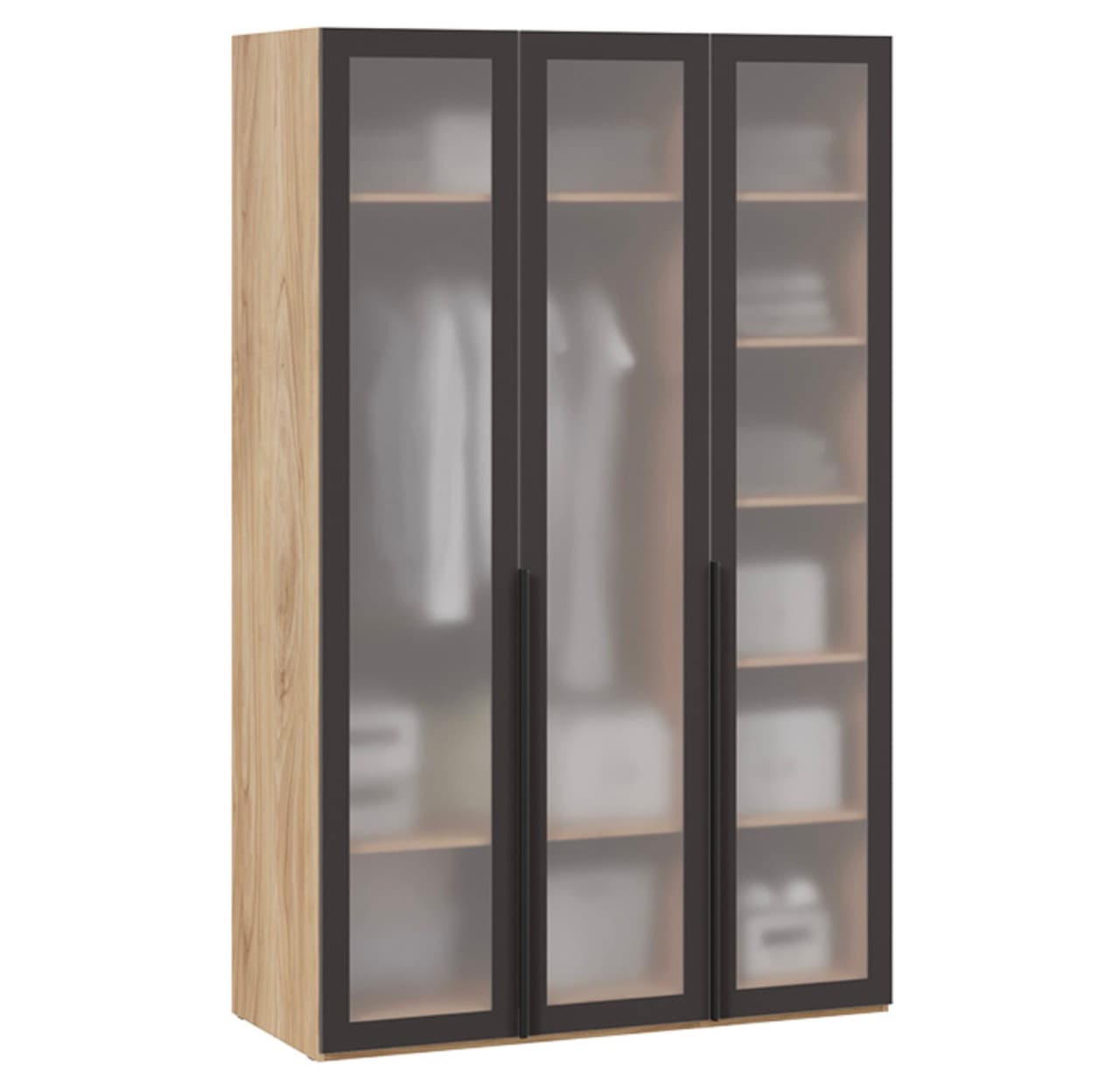 Шкаф для одежды - 3 стеклянные двери сатин (глубина 58), яблоня беллуно/графит матовый