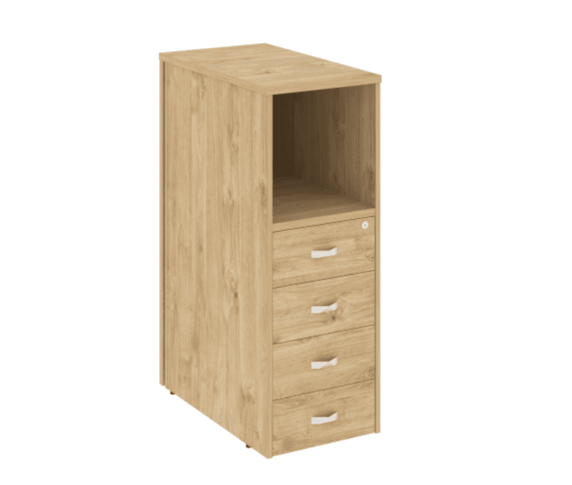 Тумба 4 ящика проходная, средняя, тиквуд светлый