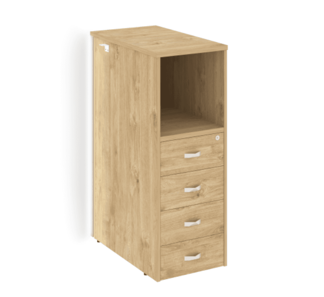Тумба с подсветкой 4 ящика проходная, средняя, тиквуд светлый