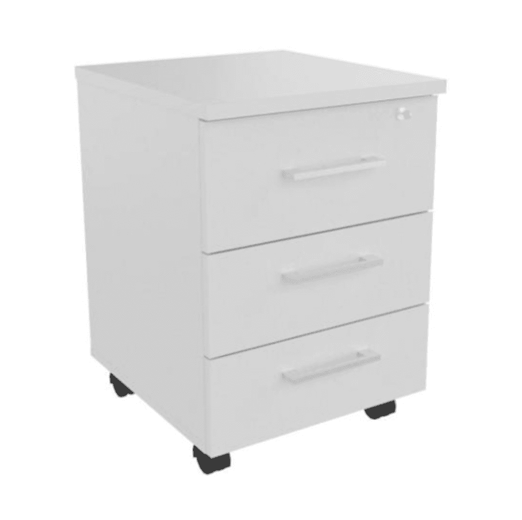 Тумба подкатная 3 ящика с центральным замком, белый